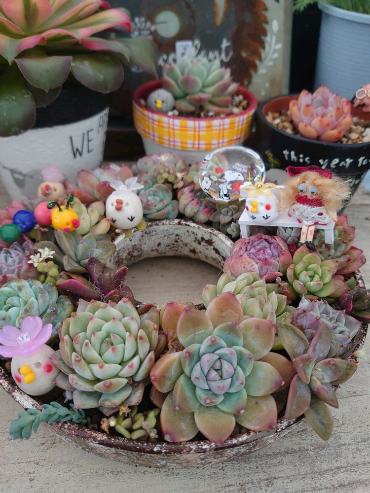 多肉の寄せ植えも鉢も全部ステキ👍👍✨✨