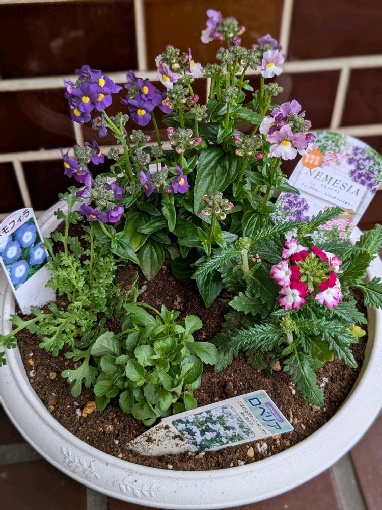 お花の寄せ植え🍀ネモフィラとロベリアも早く咲いてくれると良いんだけど…