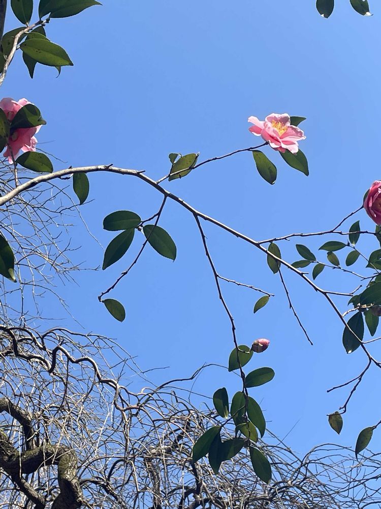 ④⑤ ピンク色の椿🌸 青空に映えて綺麗でした🤩