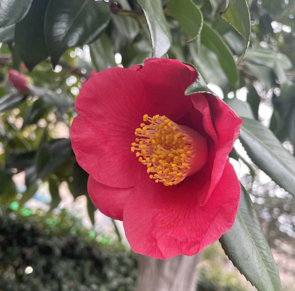 赤い椿に濃い緑の🌿が似合うね❗
