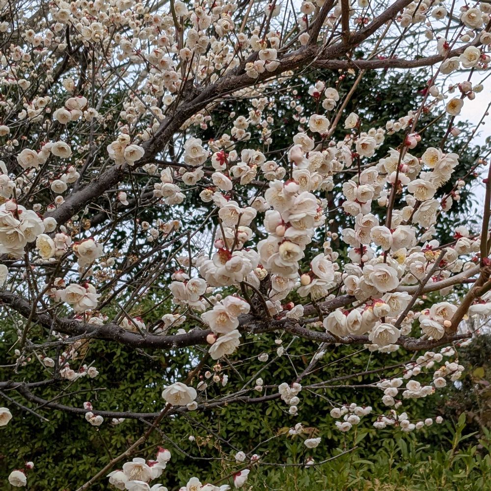 梅と、寒桜です😄寒桜は、上空だったので、上手く撮れませんでした😅あと、熱海桜も、満開でしたけど、さらに上空で、…はは、撮れませんでした😅