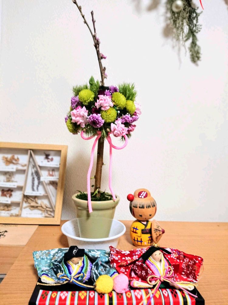 おひなさまアレンジもカネノナルキの花かわいいですね💕