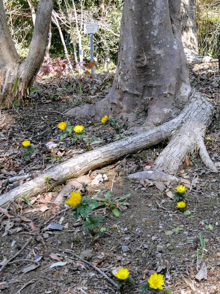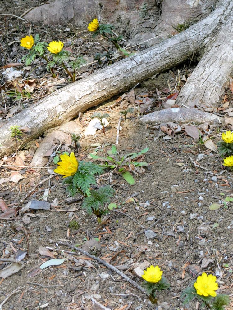 春を告げるとても爽やかな黄色のお花フクジュカイ💛(福寿草)木の根元にたくさん咲いていました😊✨