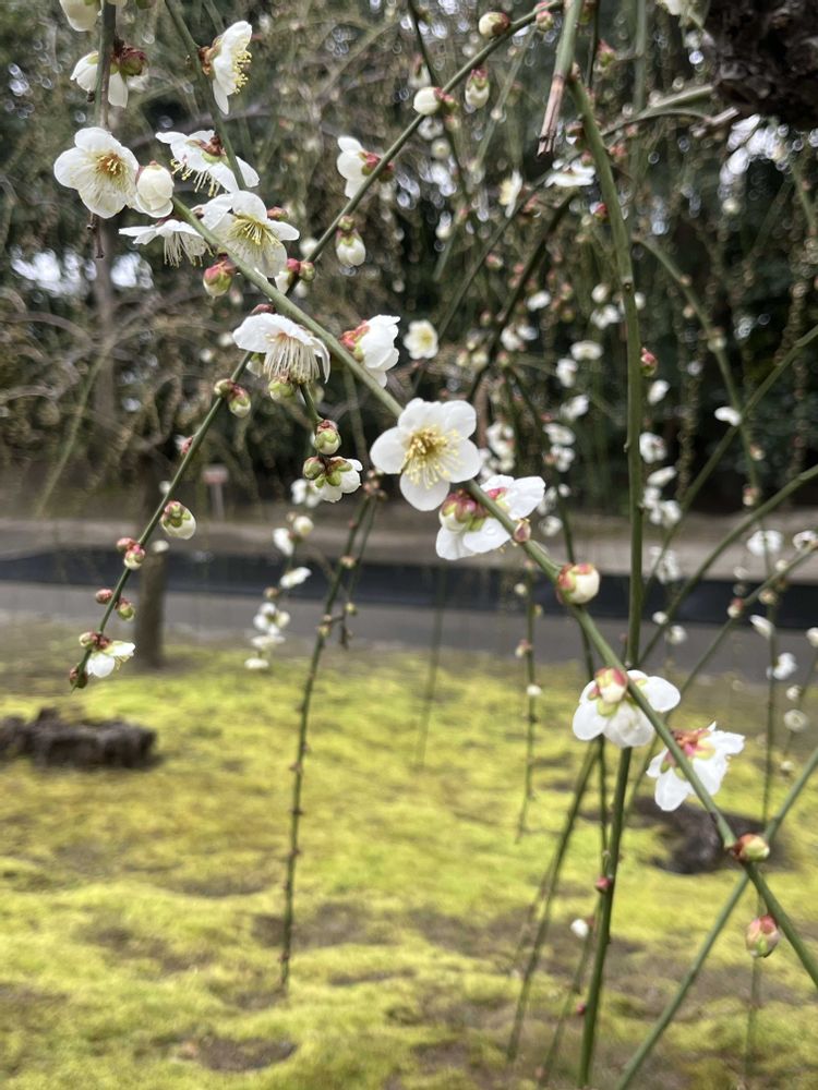 面白かったのは通常の庭園拝観料は800円なのに2/18〜3/22の「しだれ梅と椿まつり」の期間中は1000円にアップ、しかも見られるのは参道北側のお庭だけで、五葉松や赤松のある南側のお庭は「通路が狭く混雑時に危険」ということで見せてもらえませんでした😭