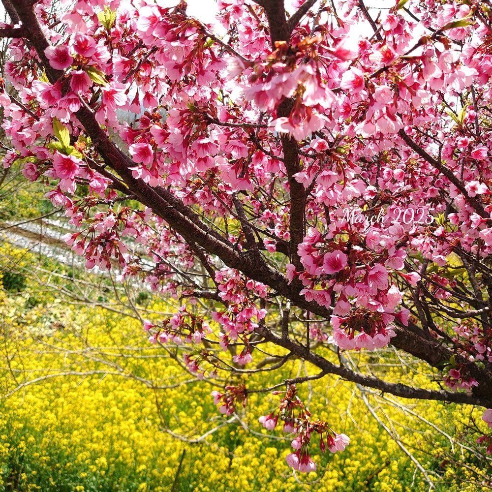 結果的には本当に綺麗な菜の花畑にカワヅサクラまで見ることができました。春を通り越してGW並みの天気でしたがきれいな景色が見れて幸せでした☺️