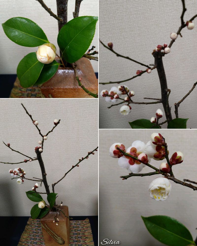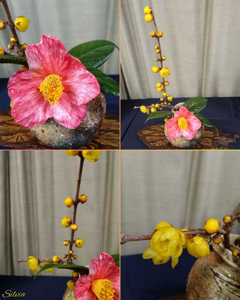 3/2付📷📱篆刻作品展にて、添えられていた生け花🩷💛🤍💗🌿🌳