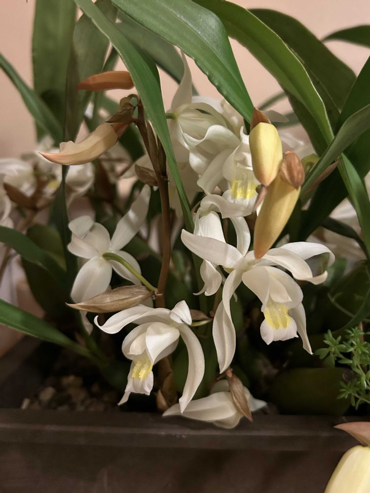 いつの間にか、窓辺に置いたランの花が満開をむかえそうです