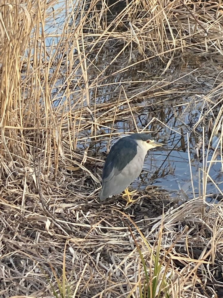 その後、石神井池沿いを歩いてたら2️⃣ゴイサギのゴイちゃんに出会う〜こちらをチラリと目が合ってしまった〜😁