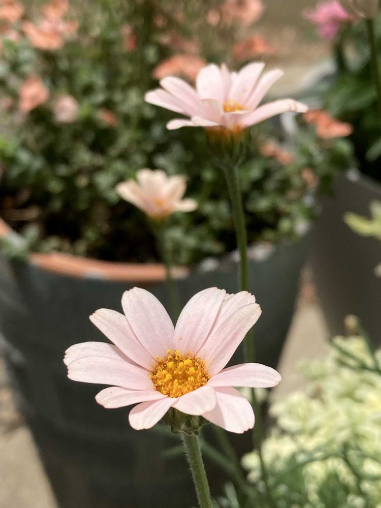 耐寒性の高さはローダンセマム、オステオスペルマム、マーガレットの順だそうですが正しく!北風の庭で一番シャキッとしています♡