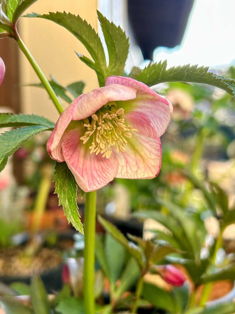 写真は1番お気に入りのクリスマスローズで、原種のチベタヌス×ボッコネイです🥰素焼きへ鉢増したからなのか…花芽が沢山立ち上がってくれました🥳