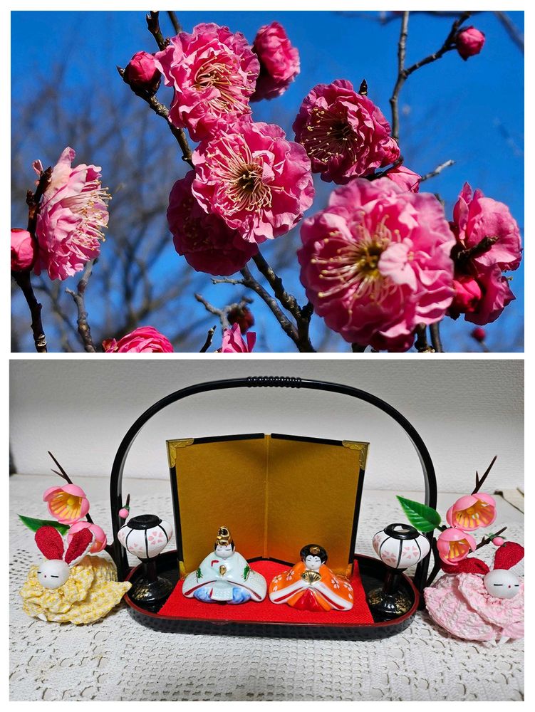 紅梅もお雛様も可愛い🥰