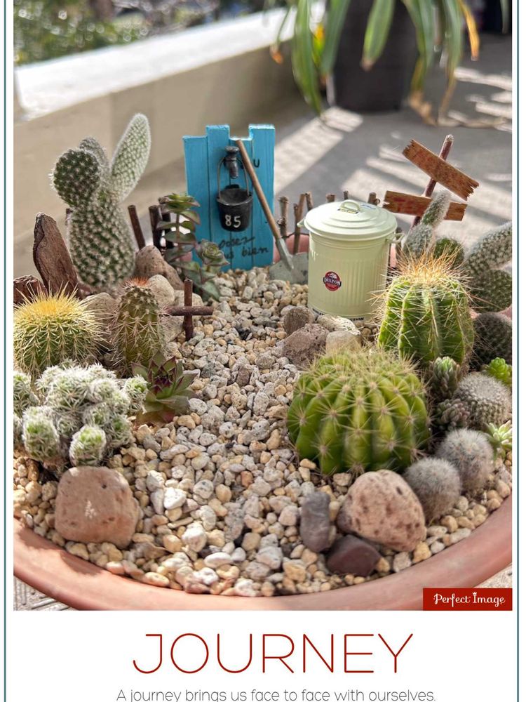 ⬇️お店にあったロックガーデン風の鉢植えを真似してサボテンの箱庭作りました🌵