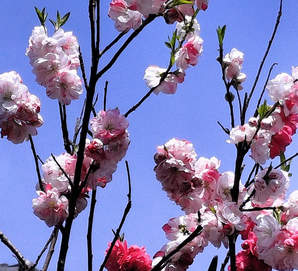 空の色と モモの花が とってもき、れ、い👍