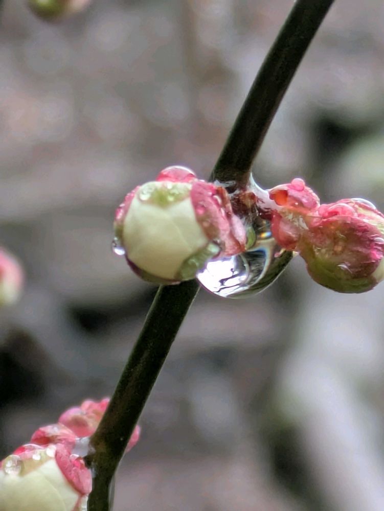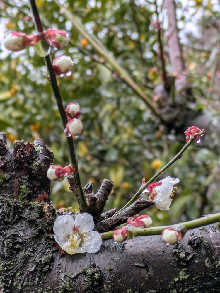 ②③④雨が上がったら、一気に梅の蕾も開くことでしょう