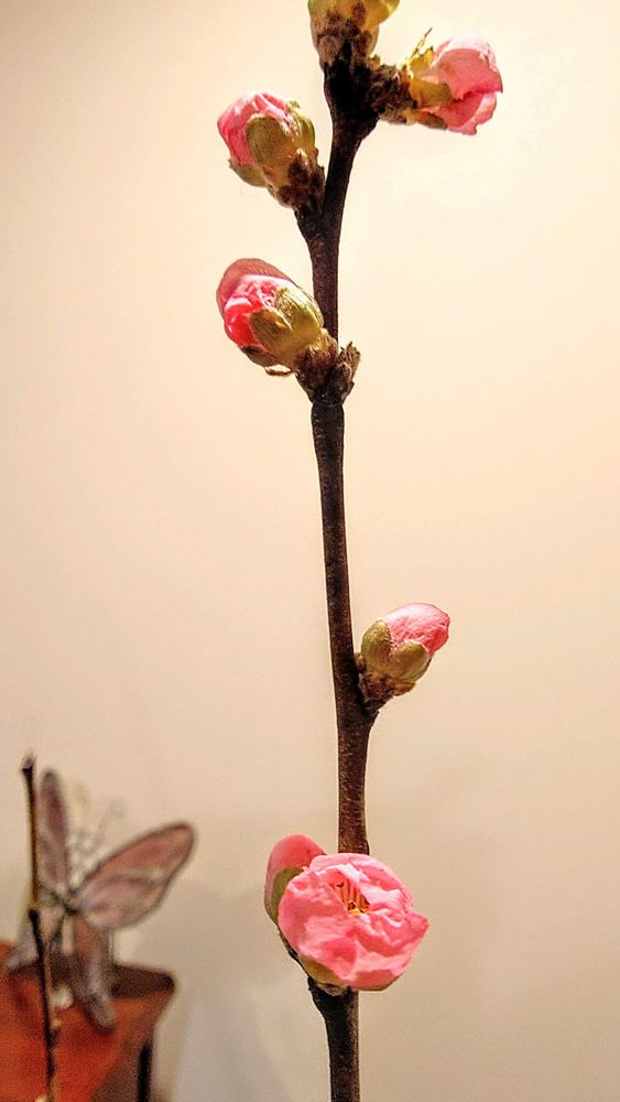 ちょっぴり開いてきた花桃とともに〜