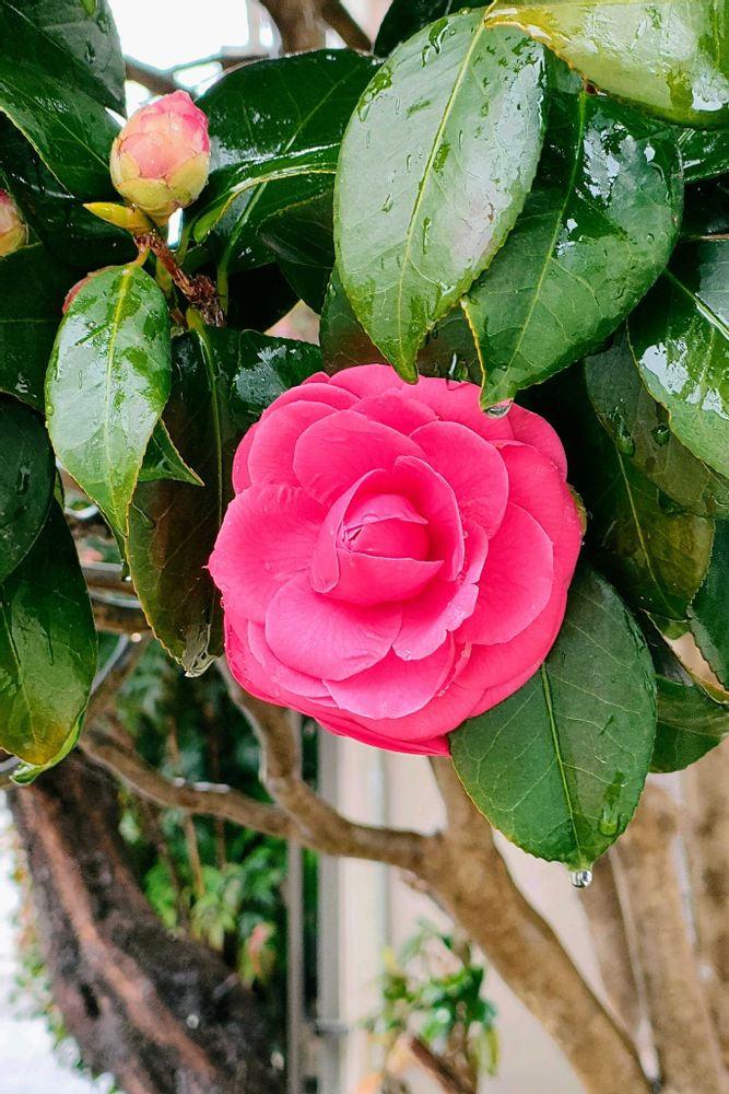 端からはしまで見てると紅い乙女椿が一本混じっていて、植えた時は苗木だったんでしょうね🌱