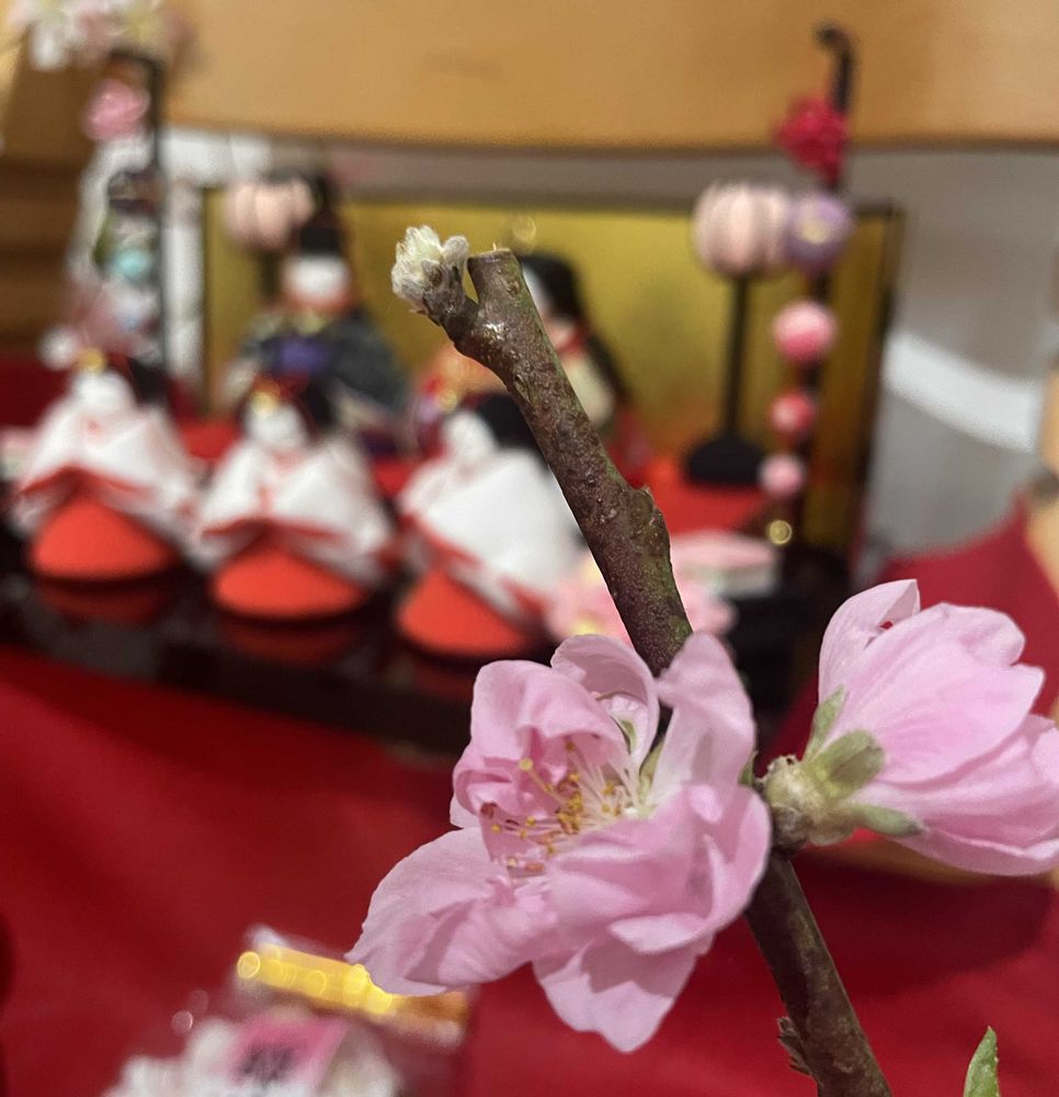 先日買った桃の蕾が部屋の暖かさでもう開いてます🌸