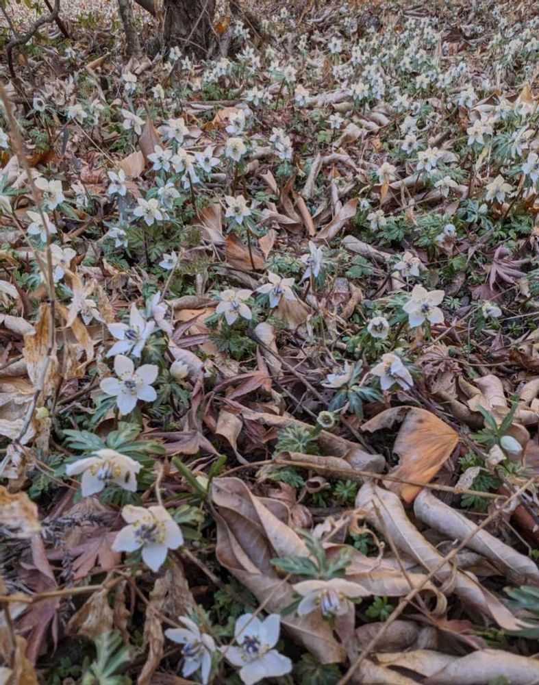 こんなに節分草が群生してるの初めて見ました🌿🤍💜🤍🌿