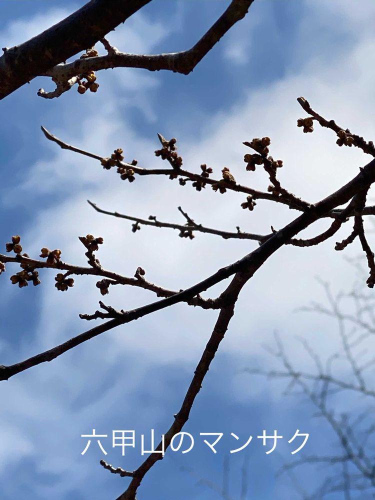 園芸種のマンサクは咲いていましたが、六甲山のマンサクは未だ蕾でした。
