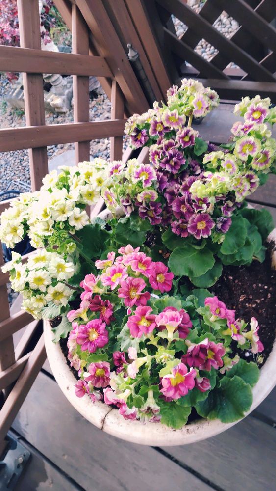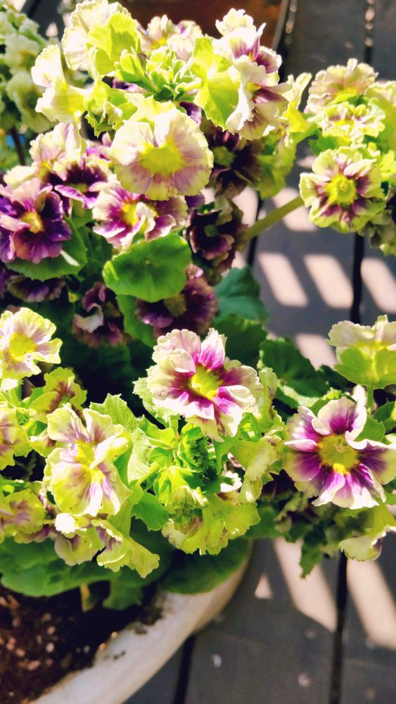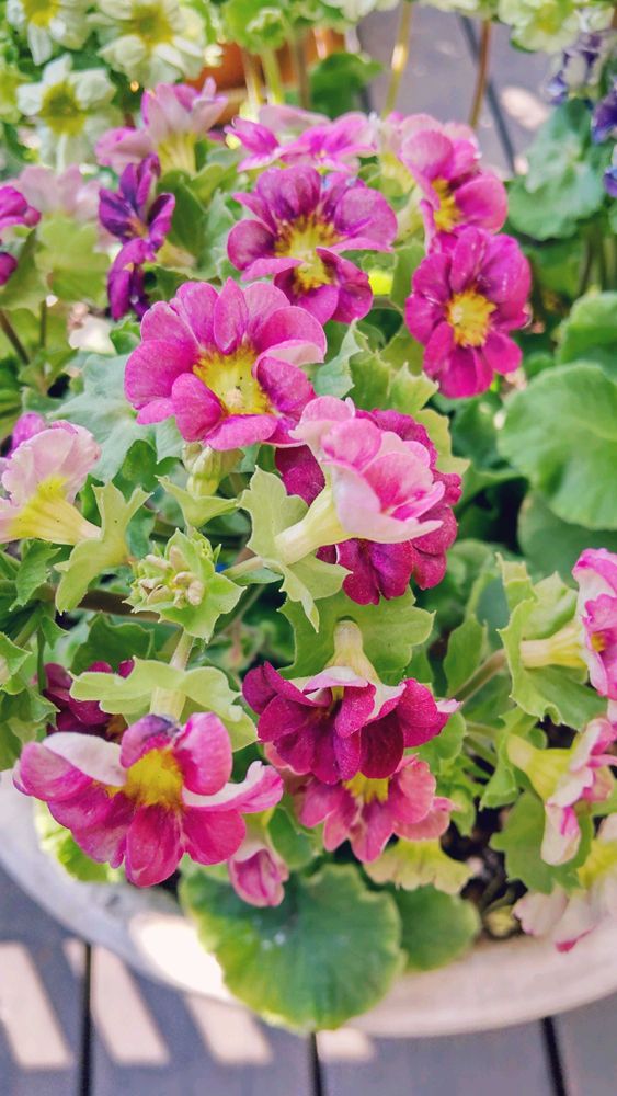 プリムラにいろんな色合いのお花が有るんですね。