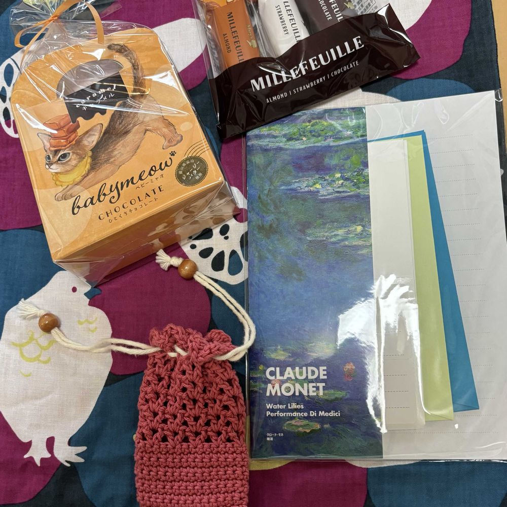 私の好きなモネのレターセットや可愛い猫ちゃんのチョコ😸も嬉しい⤴️