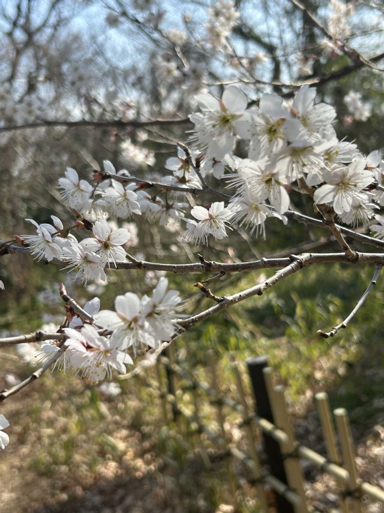 染井ヨシノより早く咲き、低木で枝数が多く横に伸ばす傾向があリ、雄しべが長い。