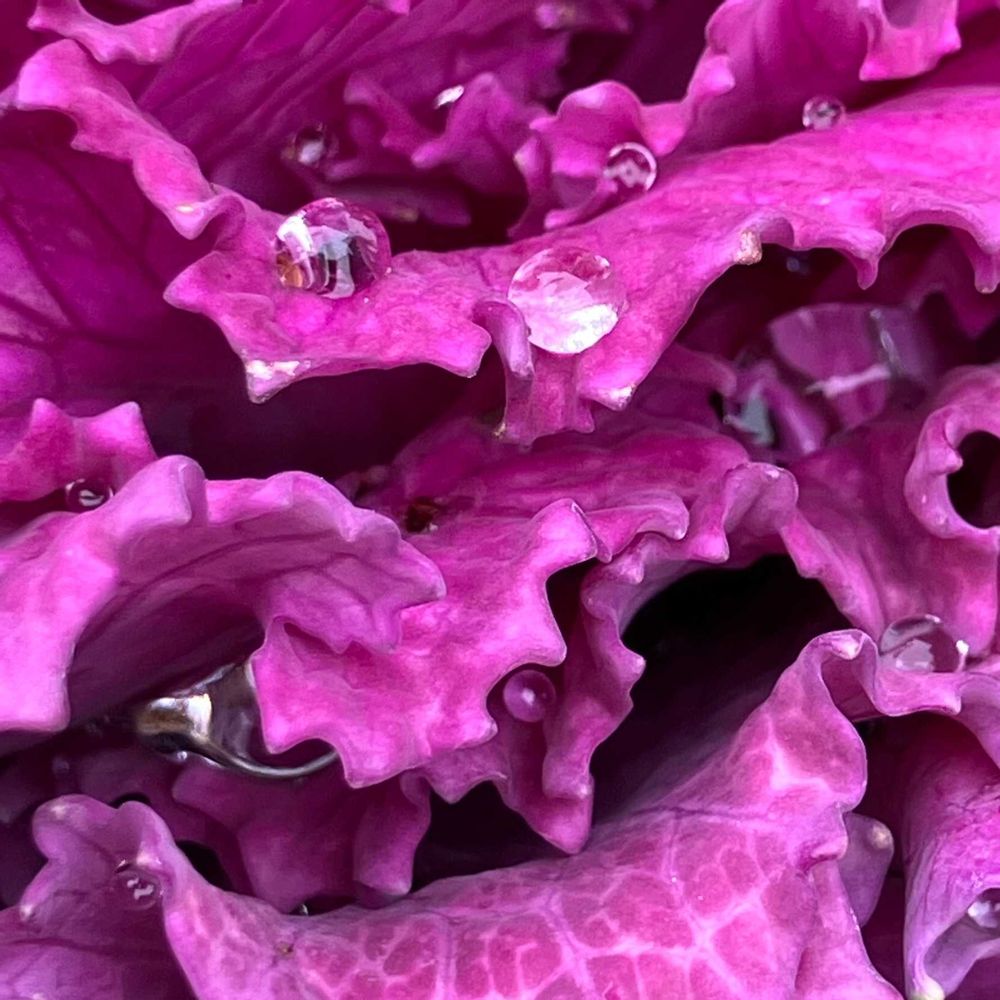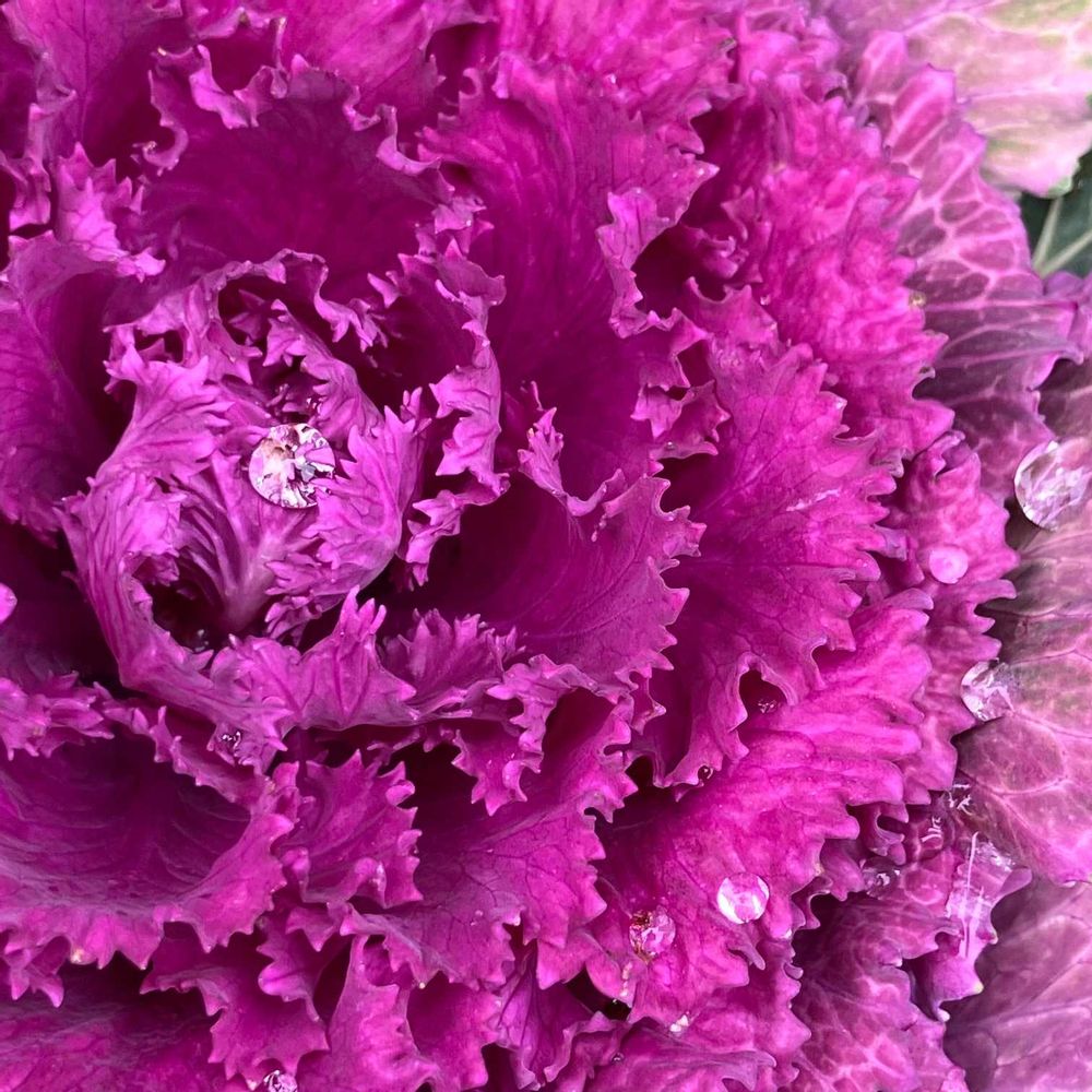 今朝の葉牡丹に溜まる雫💧ダイヤモンド💎です。