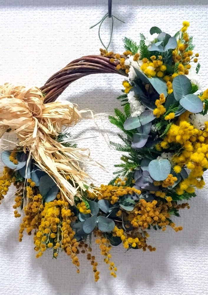 かわいいですね、ミモザのリースは春を感じますね❣️