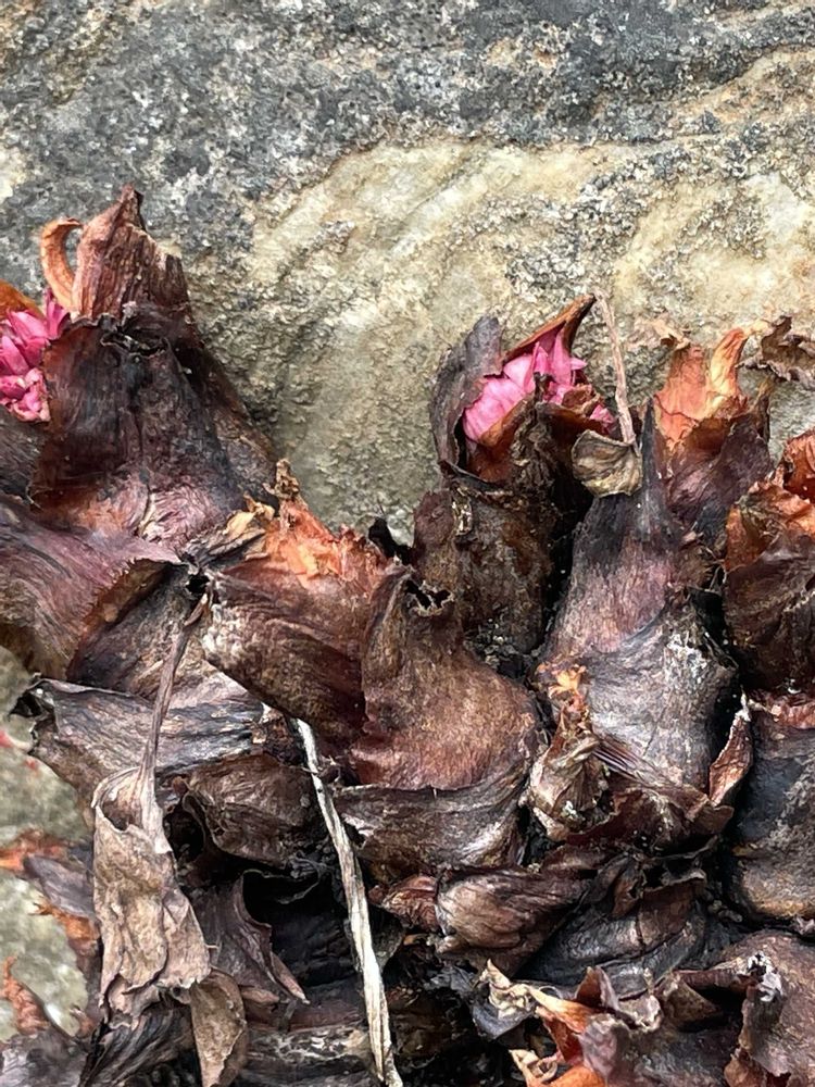 ピンク色は、蕾なんですよ😊一気にお花が咲き出してきましたね。寒くても春なのですね💕︎