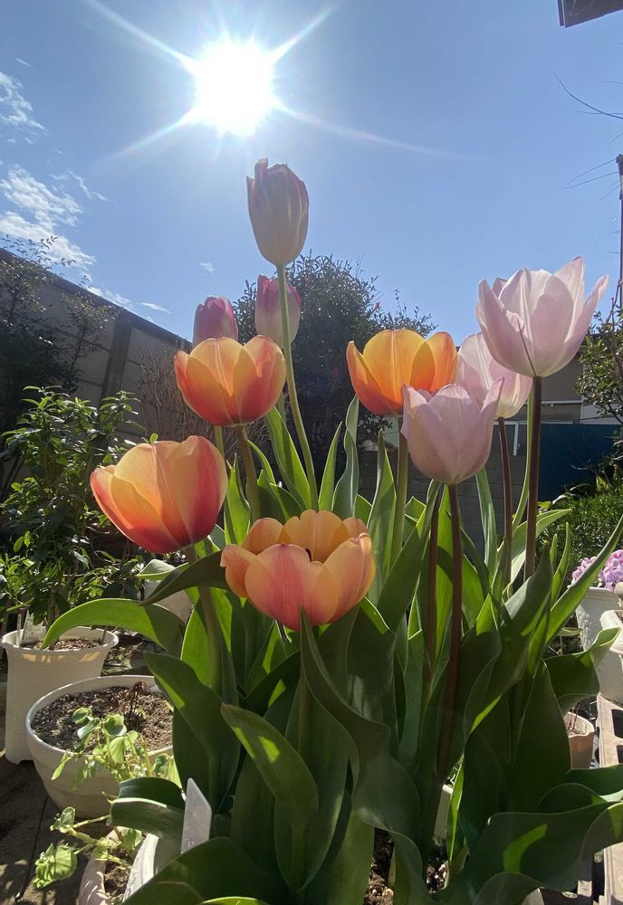 初めに植えた桃白さんの1本の花びらが散ってきましたが、約1ヶ月位咲いてました🌷