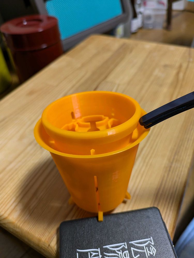 葉に沿って外に水が出ちゃうのでピンポイントで土が露出している所に水を流さないとならないし、1ヶ所だけ水をやっても反対側は乾いてるし、って事で3Dプリンターで横から水をあげられる様な鉢を作りました。