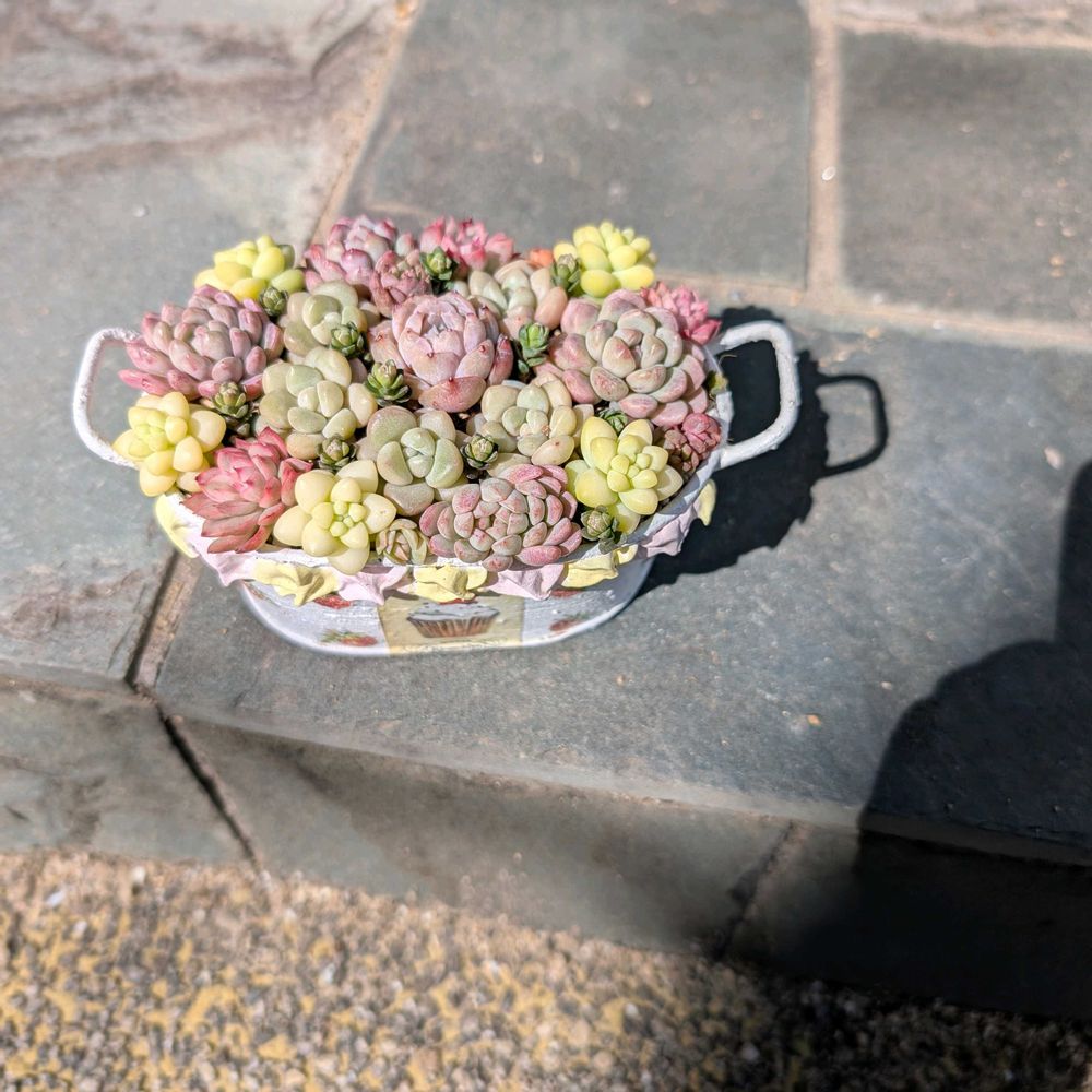 このリメ缶では寄せ植えの仕立て直し3回目ですが、毎回真ん中に置いてます☺