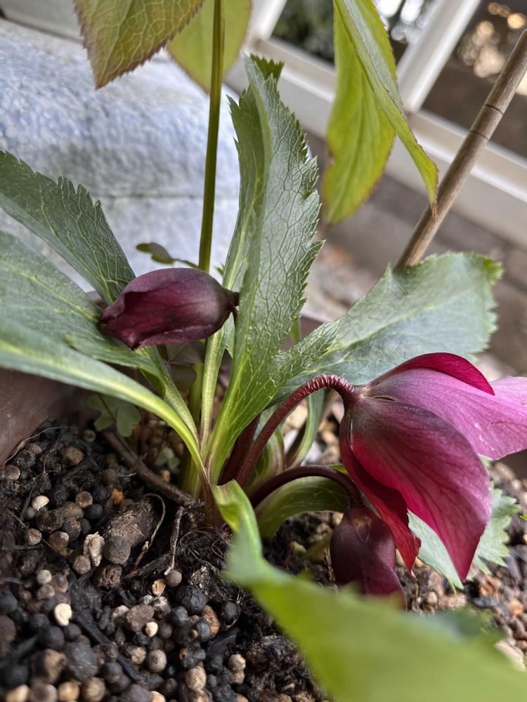 ①〜③ようやく咲きだしたクリスマスローズ🌹色もキレイで可愛い😍ご近所さんに頂いた鉢植え🪴撮るのが難しい〜😓