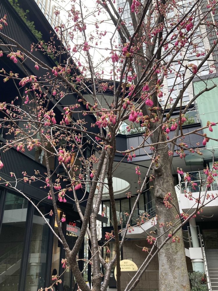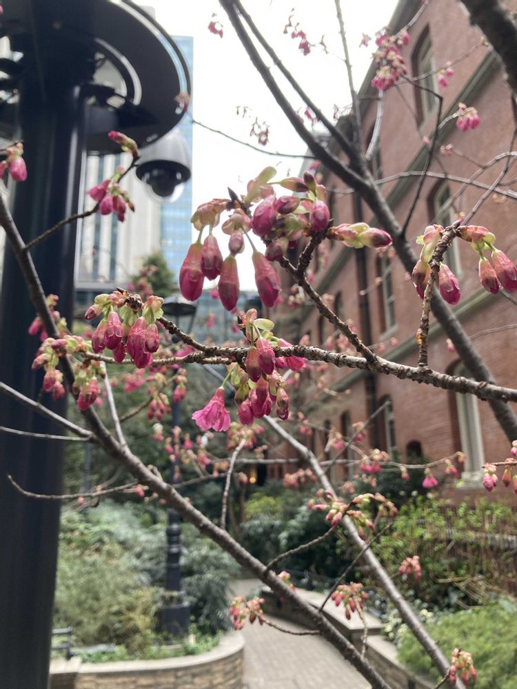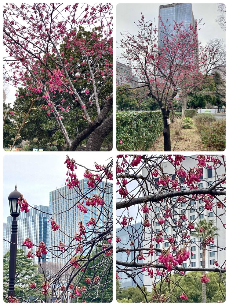 都心の「カンヒザクラ(寒緋桜)」が咲き始めた。