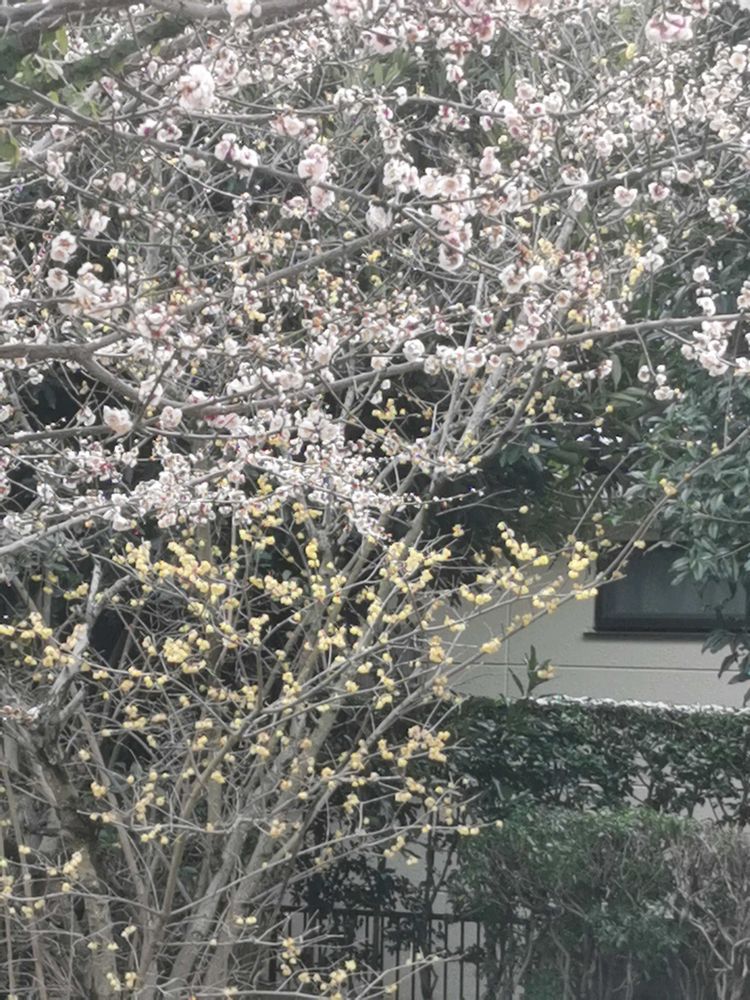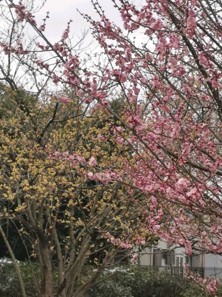 3枚目と5枚目には、梅と一緒にロウバイも咲いています。🩷💛