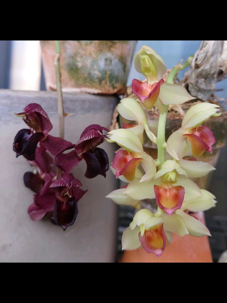 花色のバリエーションの多い原種で、ジャンボオーキッド出身であろう黄色い花が咲く株と、SVOの緑✕白の実生株も持ってるので先々楽しみです。