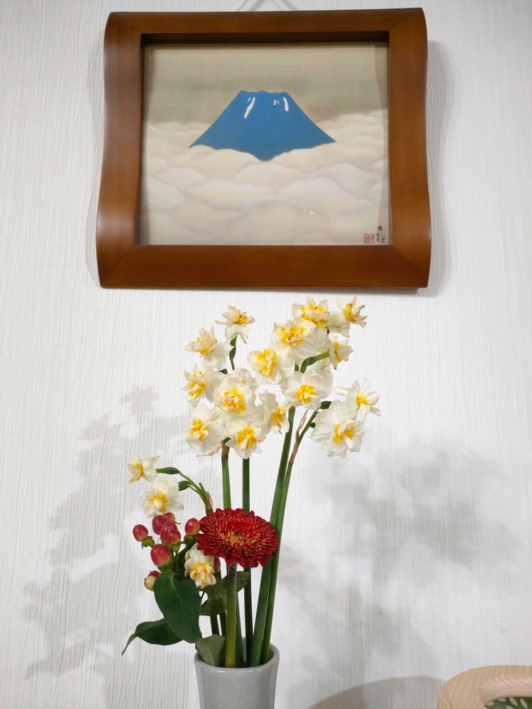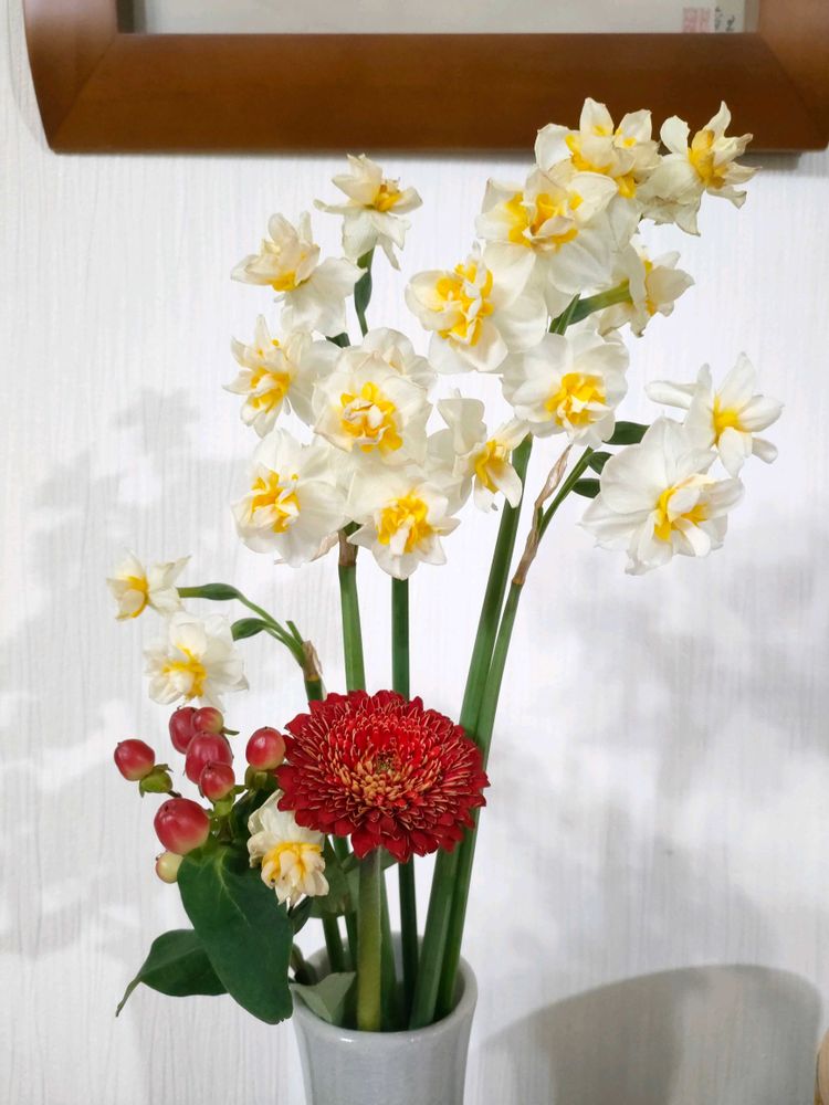 いざよいさんのガーベラ,ヒペリカム,八重咲きニホンスイセンの投稿画像