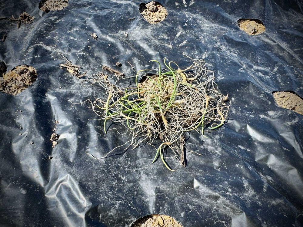 牡蠣殻石灰もタマネギ専用肥料も入れてマルチも貼って2ヶ月…