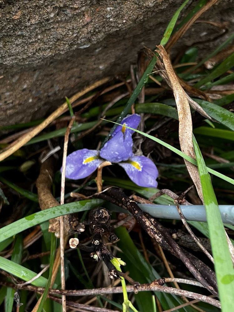 ここ数年、庭を掘り返して植木や宿根草を植え替えていたので、この子は南天の根元に紛れ込んだ寒あやめ