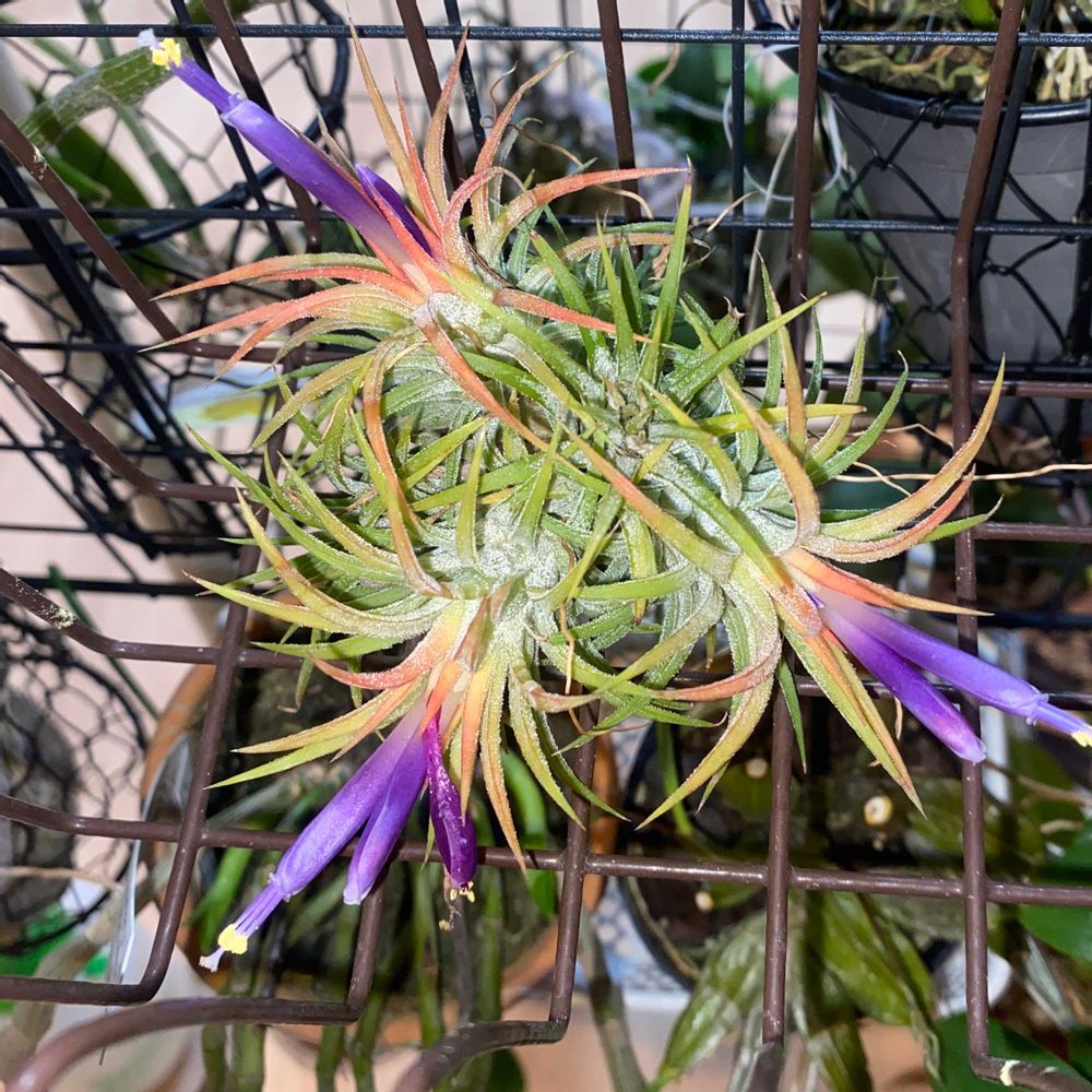 昨年咲かなかったチランジアが3本ずつ紫色の花を伸ばしてくれて🥰