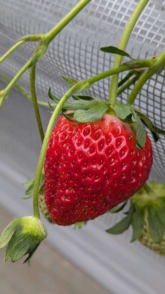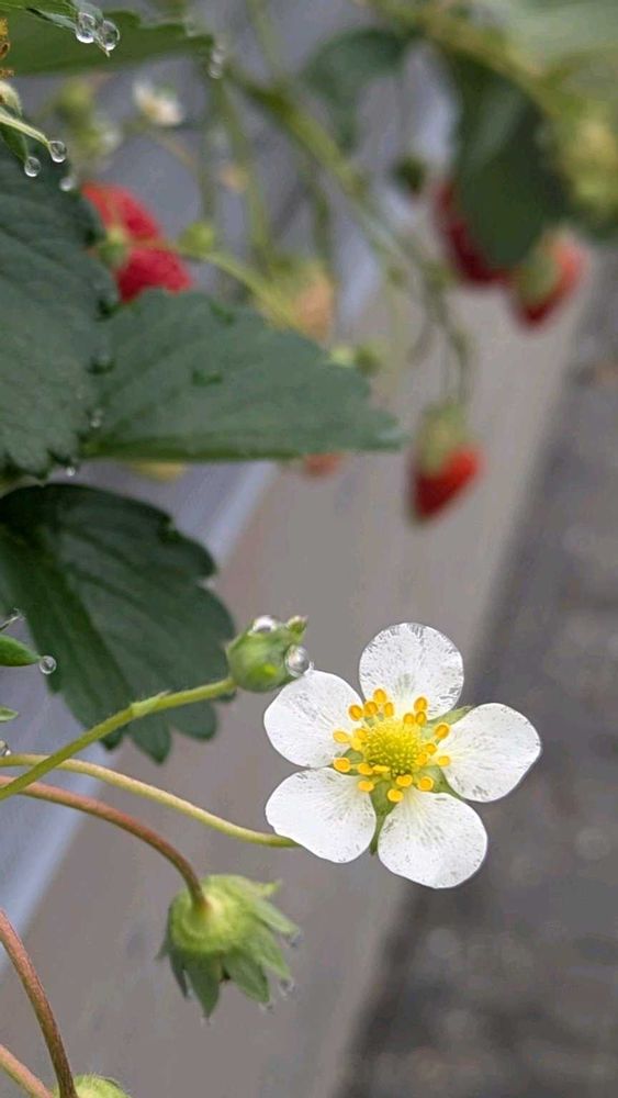 少し揺れると雫が落ちそうです🌿🍓💧😱
