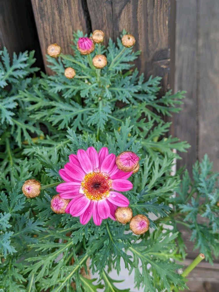 花が咲くまでどの種類が残ったのか分からず花開いてみたらボンザマーガレットのコスモスピンクでした。