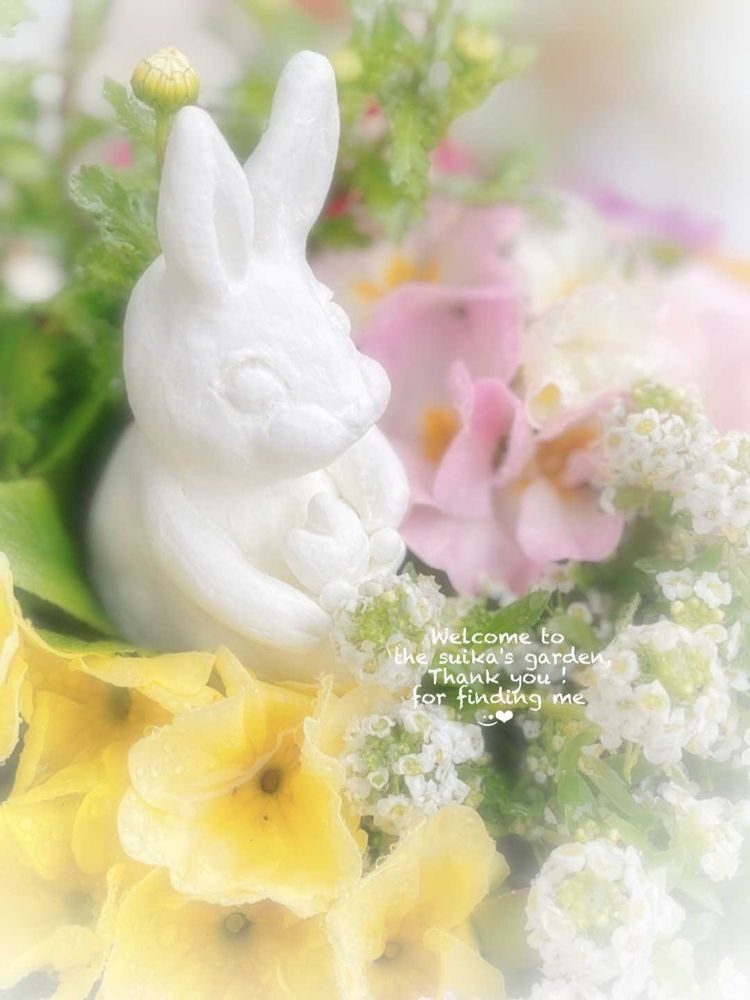 すいかちゃんの愛が詰まったうさぎさんに春のお花でお祝い。