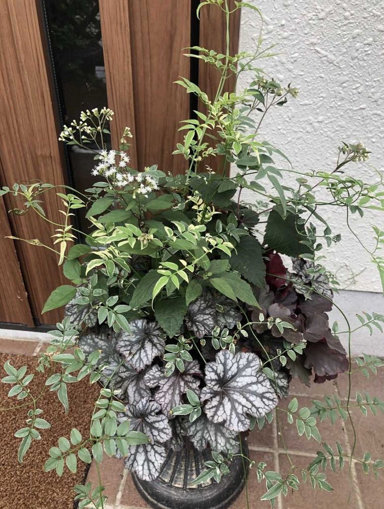 ヒューケラが目立つ寄せ植えでしたが、3ヶ月弱でジャスミンに覆われました😅