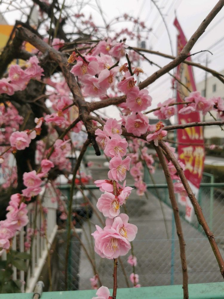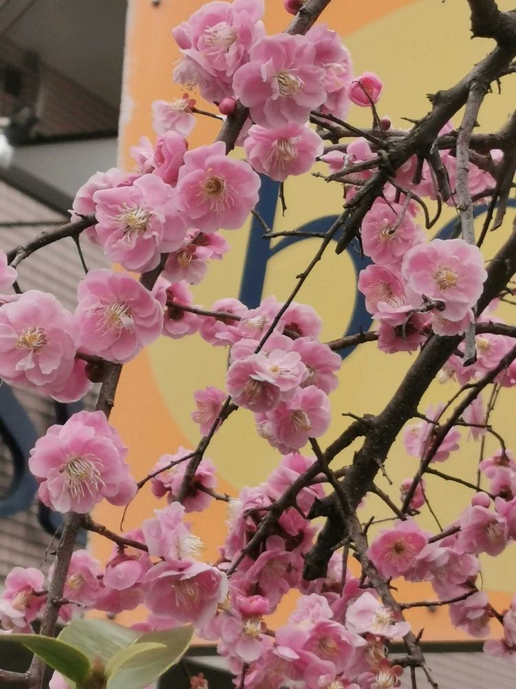 いつも、道路の反対側のピンクの花が綺麗だなあと思います。去年は、桃の花かとおもっていましたが、調べたら、梅でした。