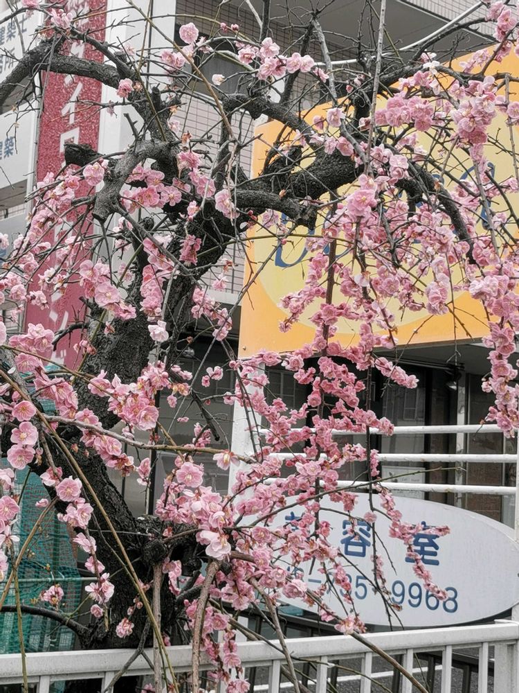 税務署の反対側に綺麗なしだれ梅が咲いていました。🩷🌸🎶
