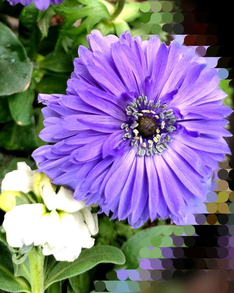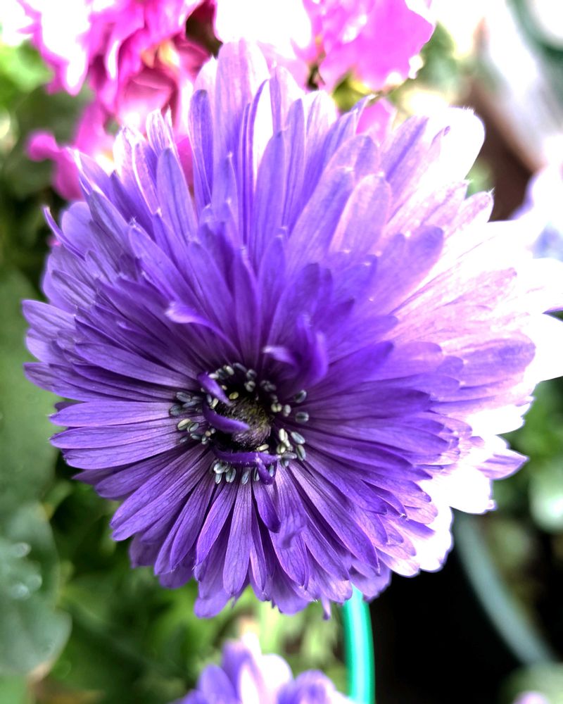 ③④アネモネ凛々花…凛々花さん先日より花びらが沢山になってきました🤗💟💟一緒に写っているのは八重咲きストックです🩷🤍