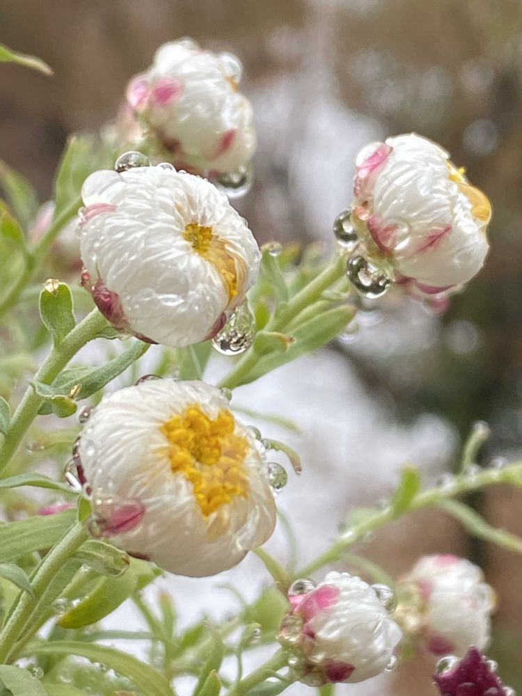 雨粒の花かんざしもビオラも頑張って素敵に咲いてます〜💖