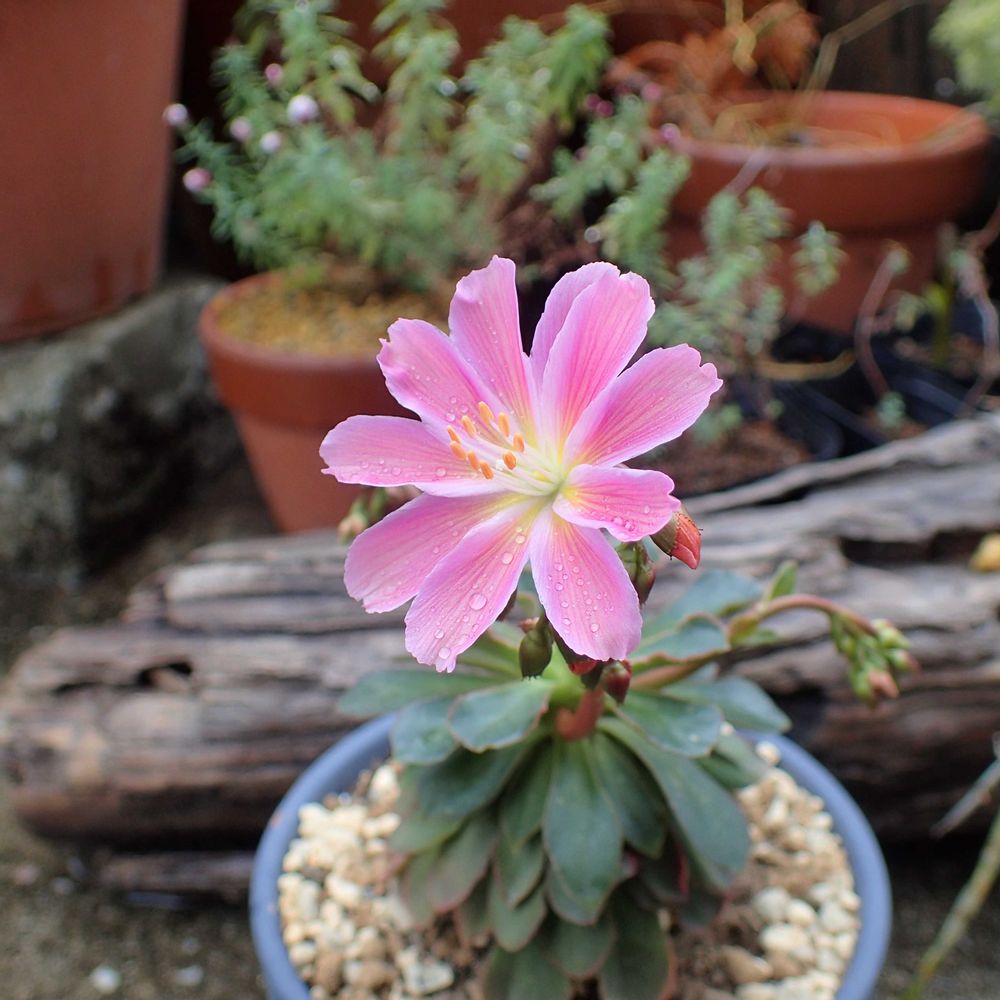 昨年沢山のお花を咲かせてくれたレウィシア。葉姿は昨年と、違ってるけど夏越し成功してまたお花を咲かせてくれました🌸ハナカンザシも夏越しできてもうすぐ咲きそうです☺️