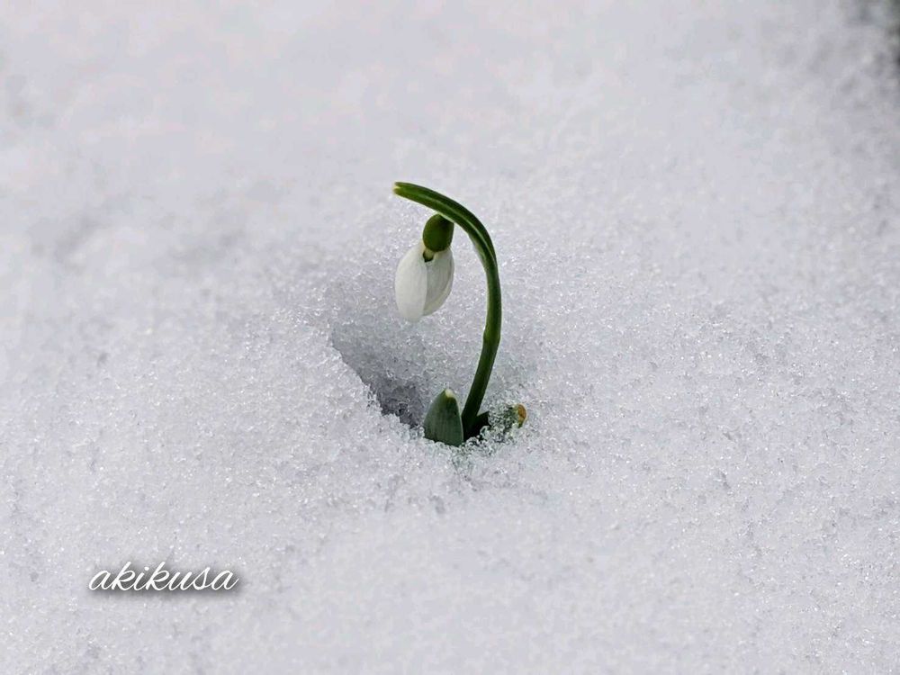雪がスノードロップの可愛さを引き立ててくれて いい仕事をしましたね〜